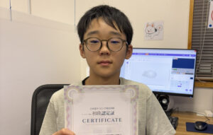 小学6年生のF君が、タッチタイプ検定 初段 に見事合格しました!